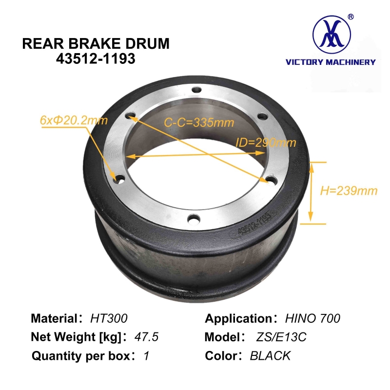 Phụ tùng xe tải Nhật Bản 43512-1193 Tang trống phanh sau 6 lỗ cho Hino 700 ZS E13C 435121023